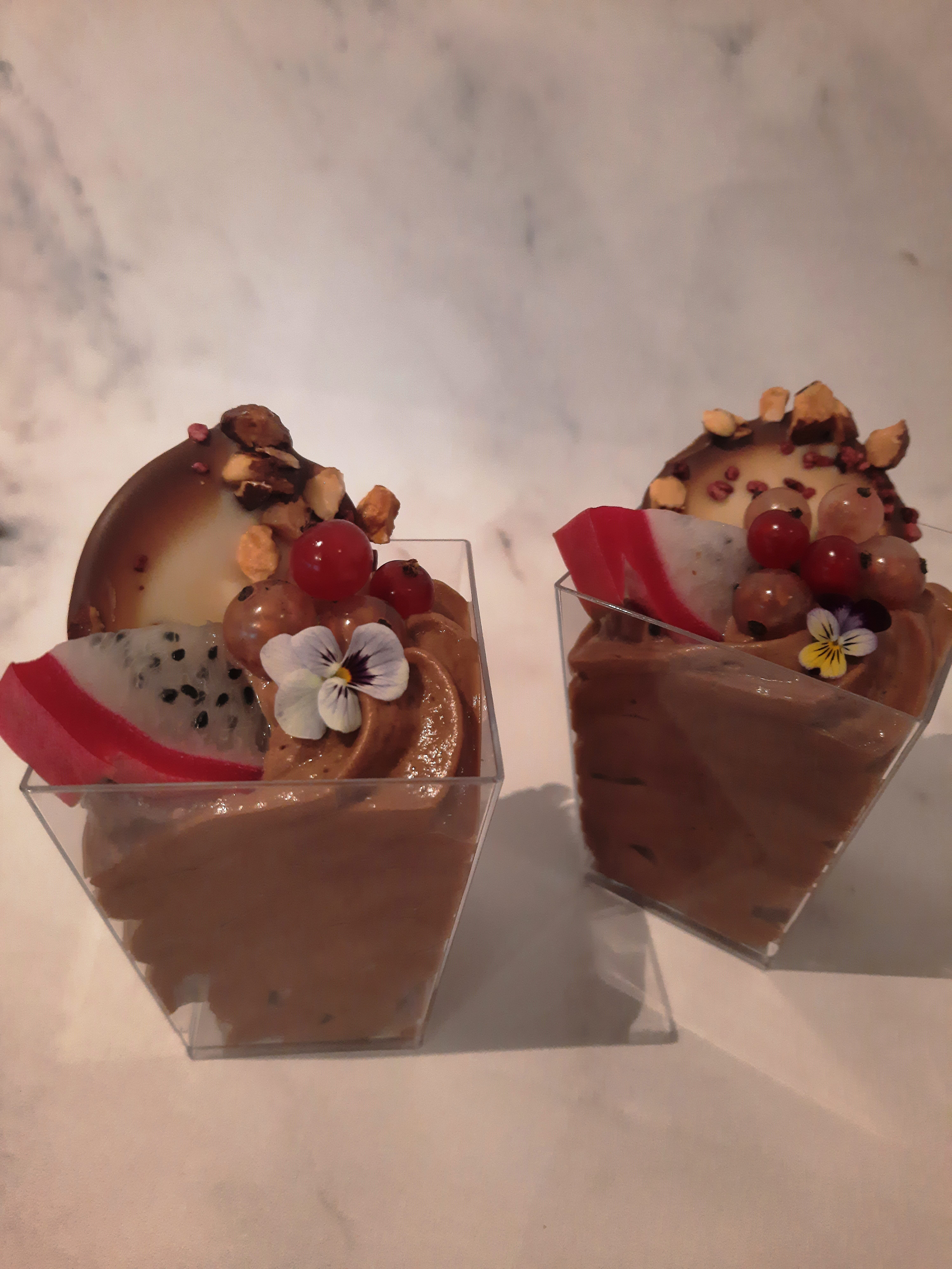 Luchtige, huisgemaakte chocomousse, gemaakt van kwaliteitsvolle Belgische Callebout chocolade.